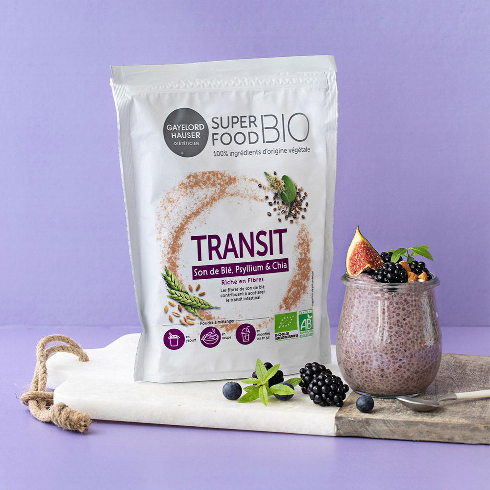 Cette poudre superfood 100% végétale et bio, élaborée avec des experts en nutrition, est composée de son de blé ; superaliment riche en fibres qui contribue à accélérer le transit intestinal, pour un meilleur confort et bien-être. Elle contient également du psyllium et des graines de chia, deux super-ingrédients naturels au profil nutritionnel exceptionnel.